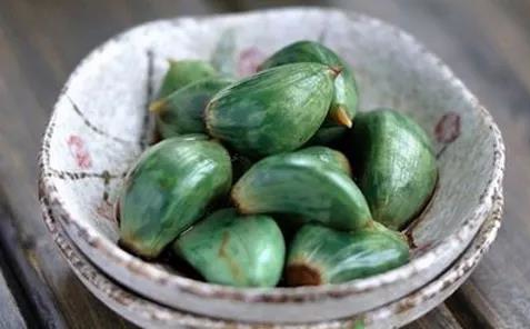 在中國北方地區(qū)有在臘八這天用醋泡大蒜的習俗,名“臘八醋”“臘八蒜”。醋要泡到大年初一,屆時要吃素餃子,取一年“素素凈凈”之意,蘸臘八醋吃,別有一番滋味。臘八蒜其實材料非常簡單,就是醋和大蒜瓣兒,做法是將剝了皮的蒜瓣兒放到一個可以密封的容器里面,然后倒入醋,封上口放到一個冷的地方。慢慢地,泡在醋中的蒜就會變綠,最后會變得通體碧綠的,如同翡翠碧玉,是過年時吃餃子的完美佐料。